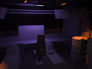 A test of some deck lighting using Maya Mental Ray. No textures and still need to populate with plenty of objects. I guess I should add a mass of cables under the console. Perhaps even some cables/wires hanging from the ceiling. Most of the console objects are proxy objects.